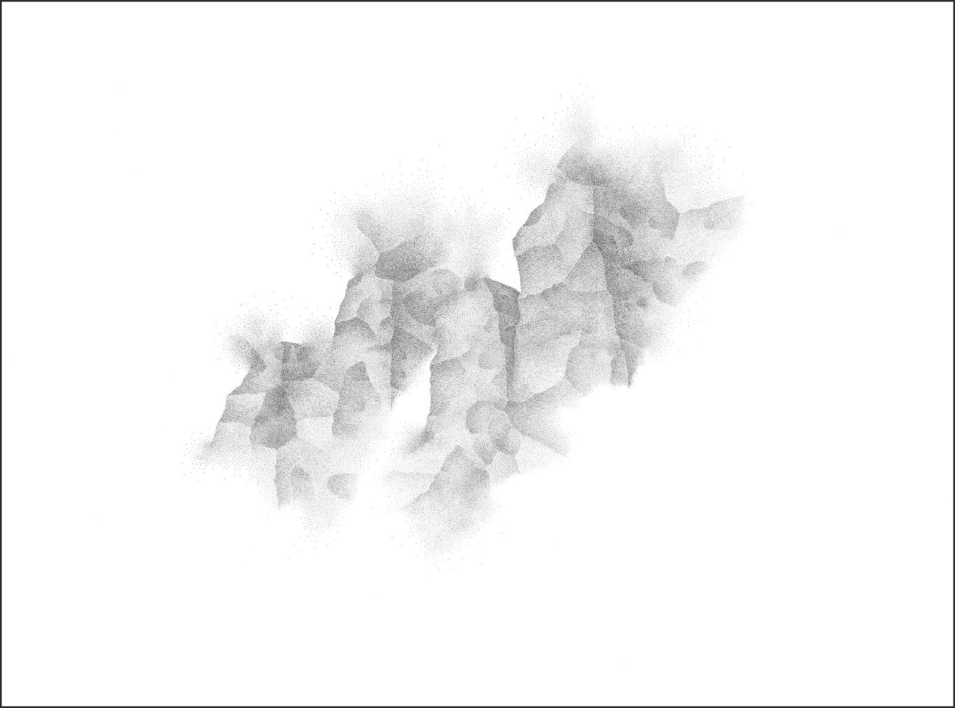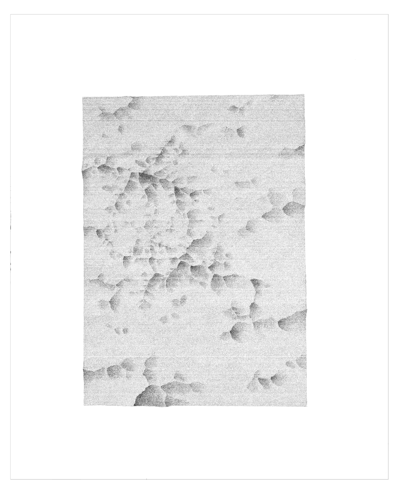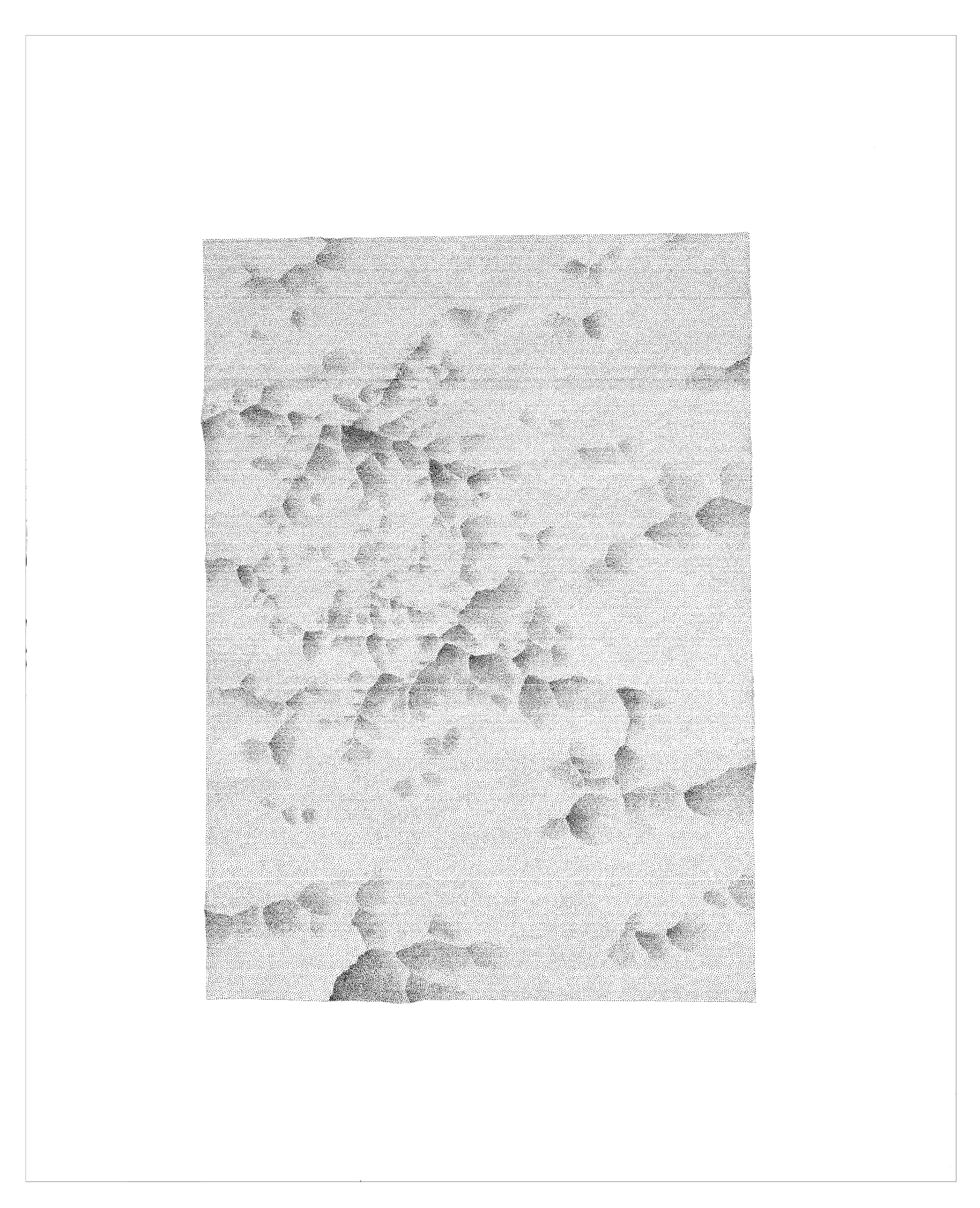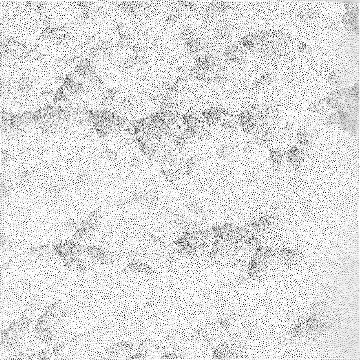 Le point, comme brique élémentaire de mon dessin, joue avec les pleins et les vides. Les densités varient jusqu'à dispersion des masses solides.