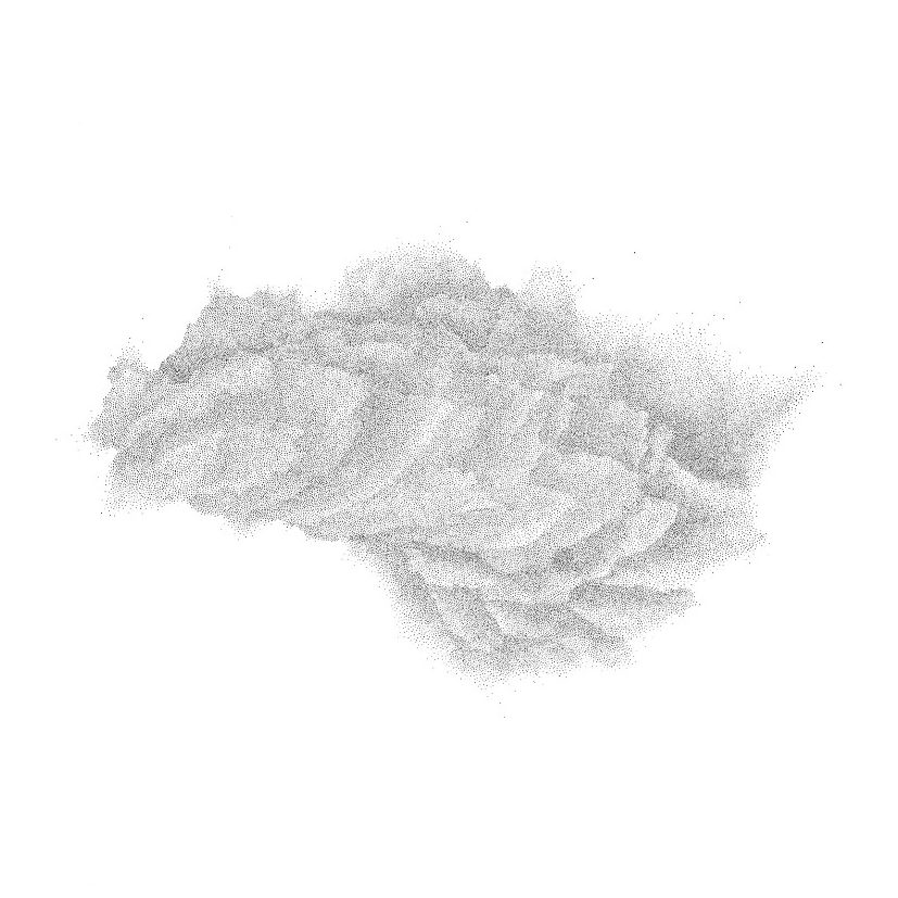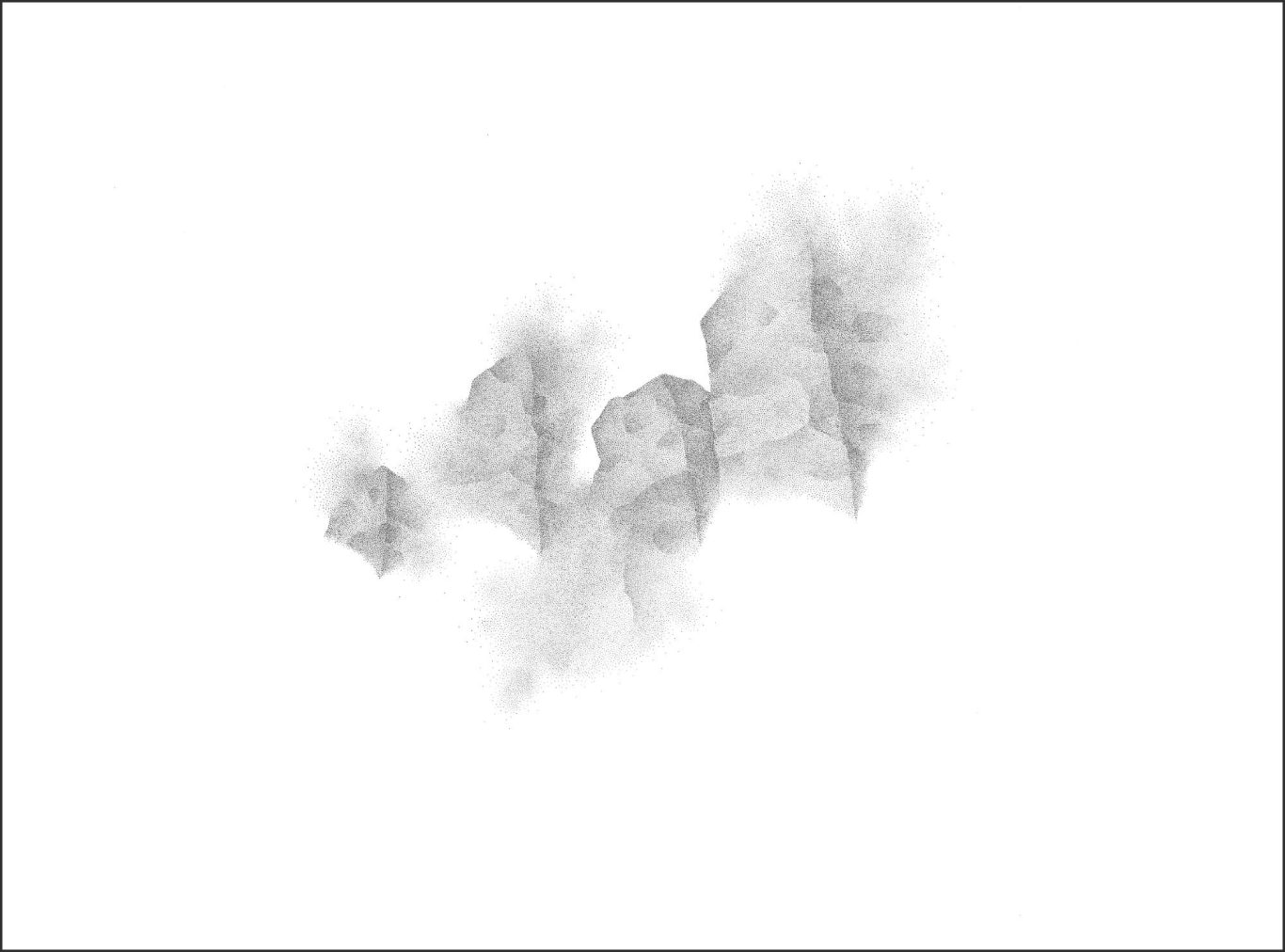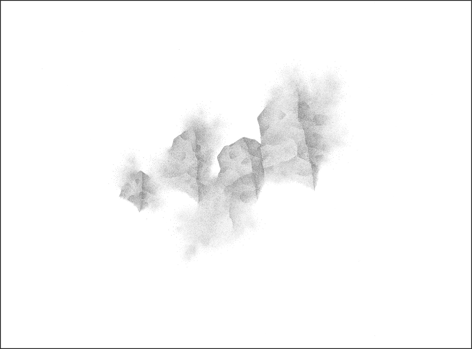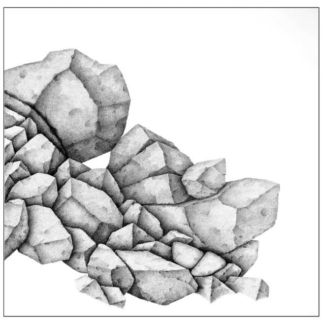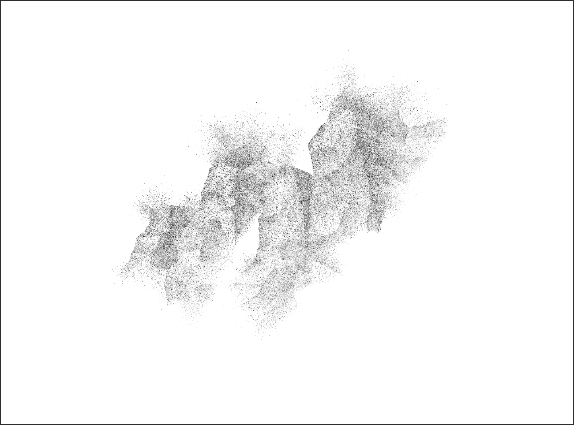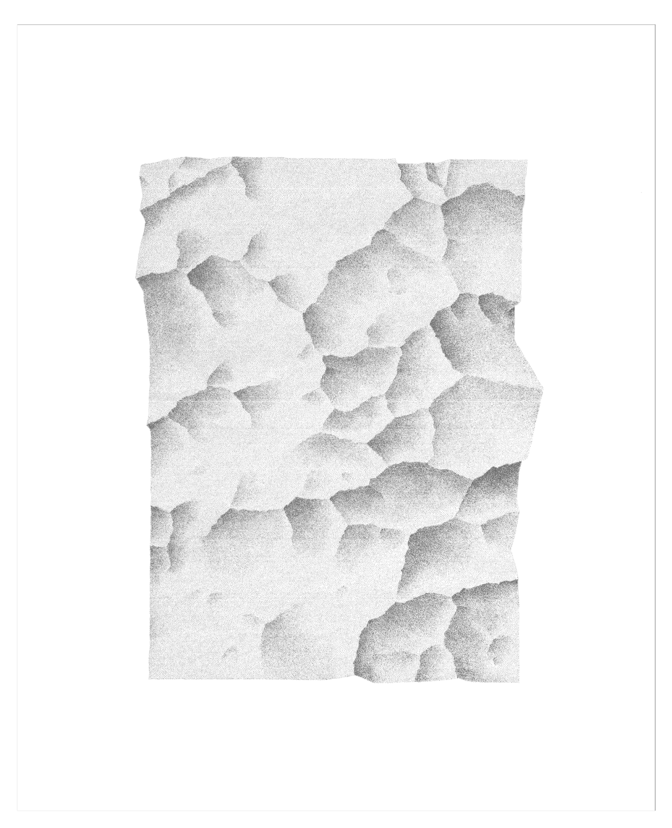 Le point, comme brique élémentaire de mon dessin, joue avec les pleins et les vides. Les densités varient jusqu'à dispersion des masses solides.