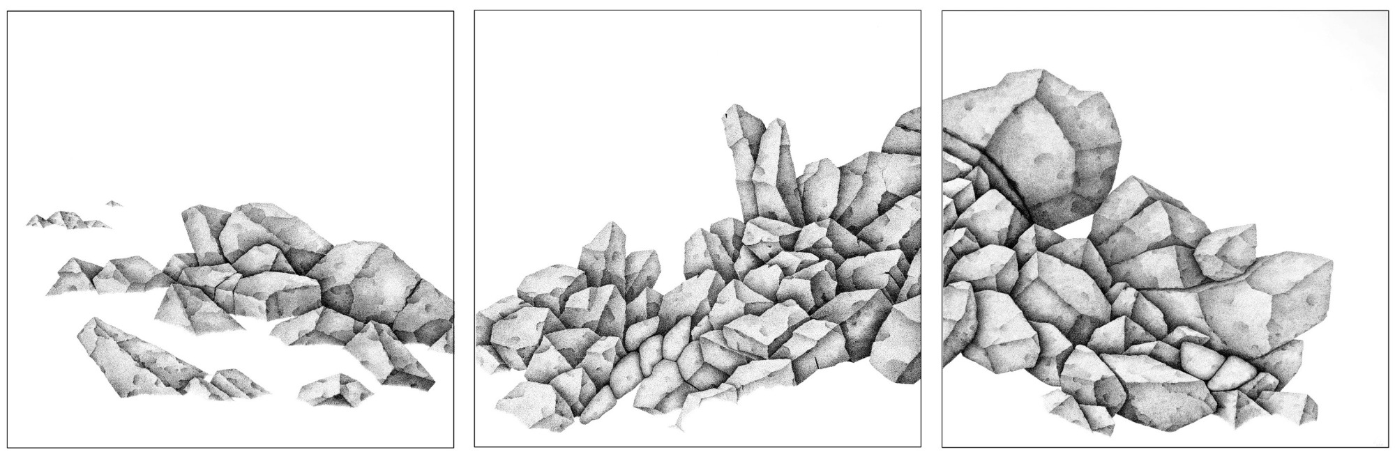 Un espace de dessin, de réflexion, où il me plait d'interroger les notions de masse et de densité, d'érosion et de dispersion.