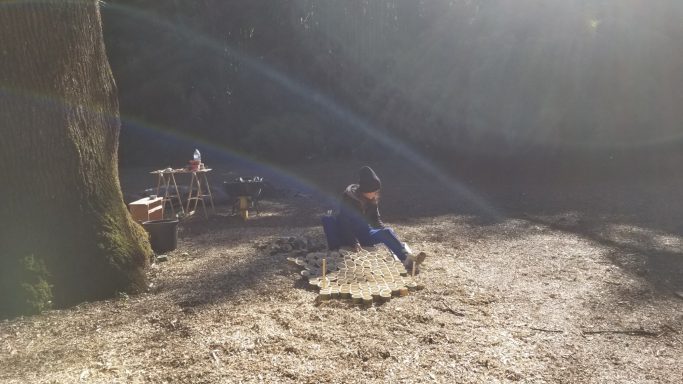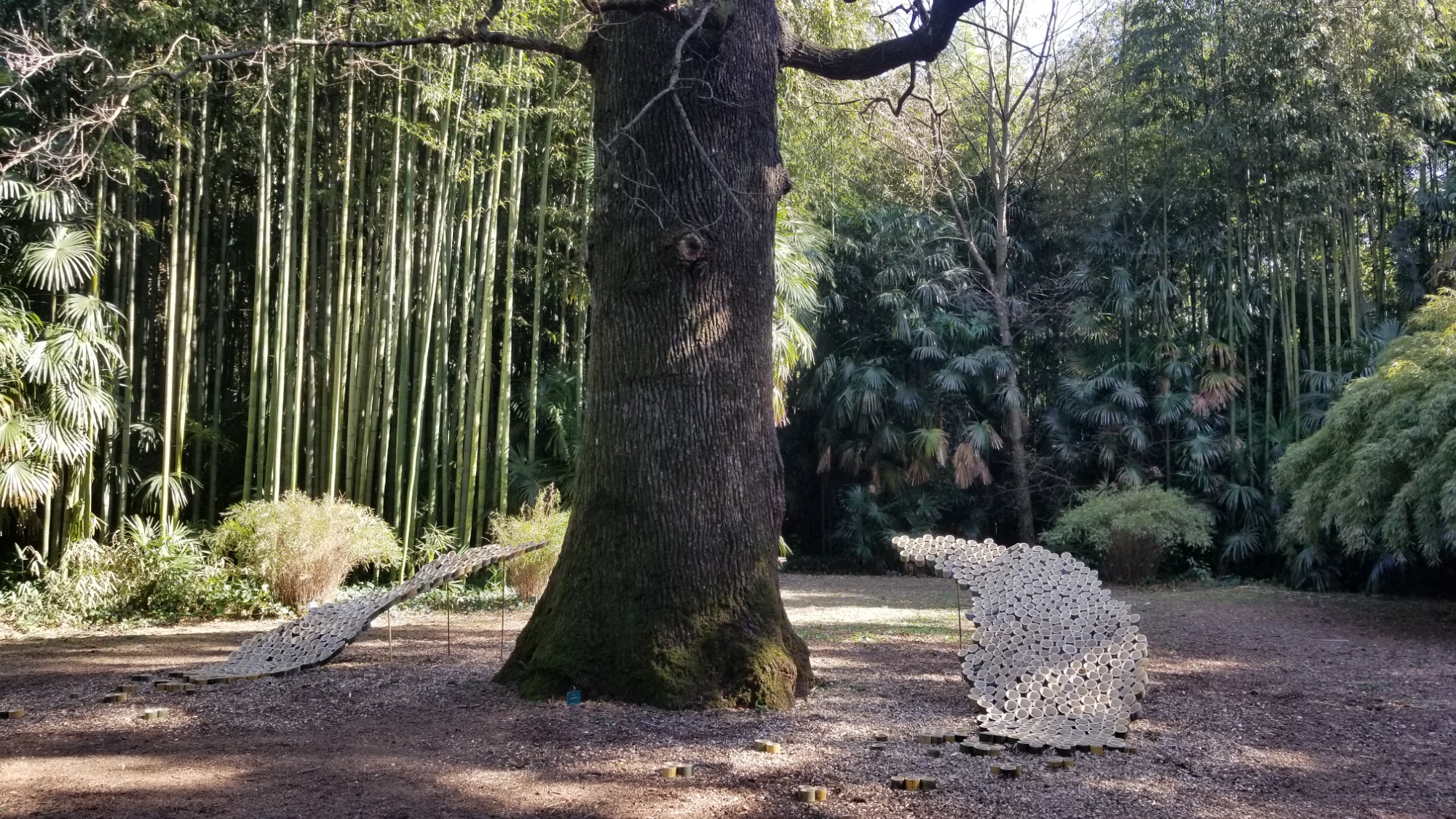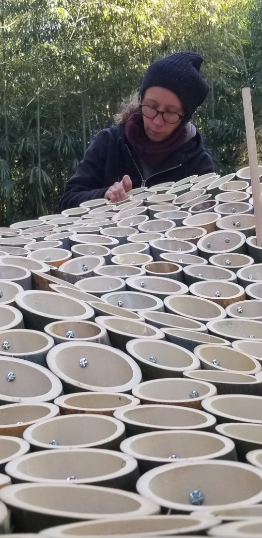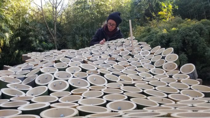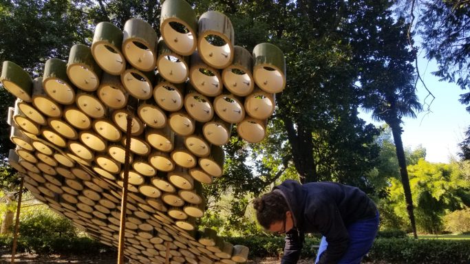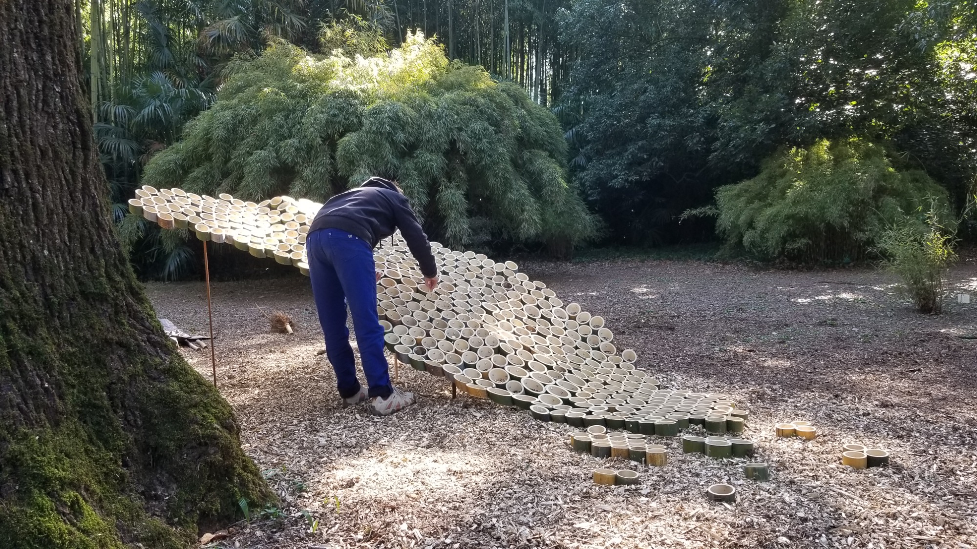 Réalisation d'une sculpture in-situ lors de ma résidence à la "Bambouseraie en Cévennes"