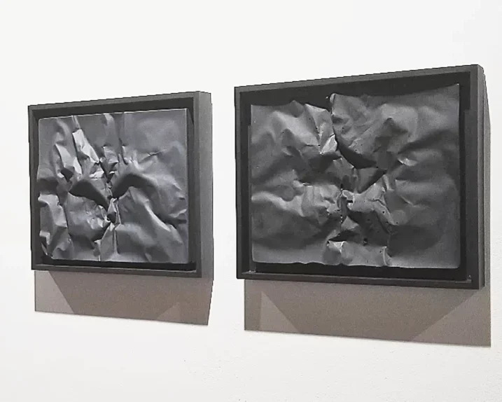 Un rapport cartographique au relief me permet d'en saisir les formes et les mouvements à l'échelle d'un temps géologique. Mettant en évidence le caractère fragile d'une croûte terrestre que je rapproche d'un papier froissé, sur lequel point par point, je recherche l'ombré de l'Ubac.